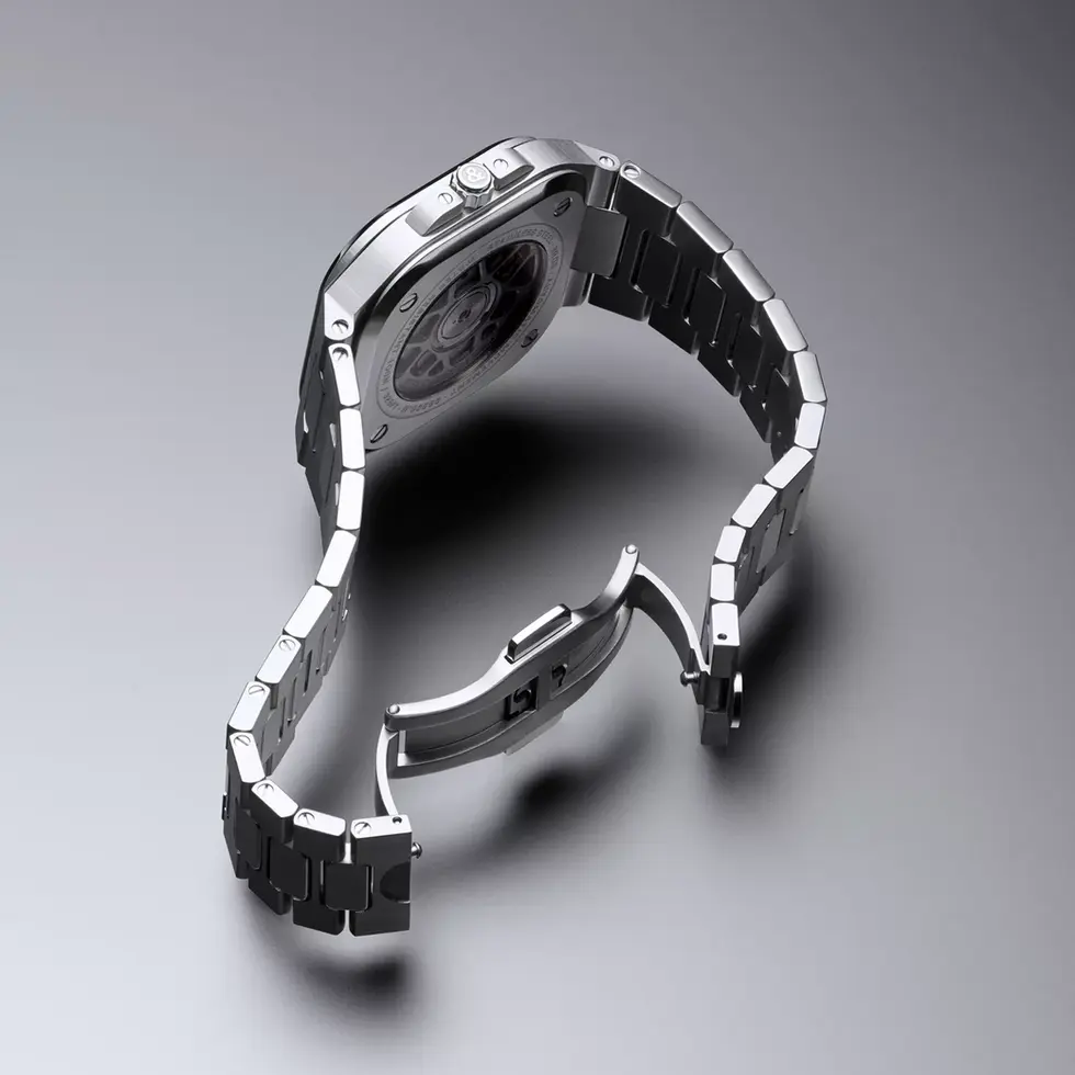- Integrated bracelet design — bracelet flows seamlessly into the case, giving a unified visual and ergonomic feel. (sincerewatch.com)
